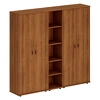 Оригинальный дизайн столешниц с использованием профиля МДФ и декоративных вставок контрастного черного цвета в углах. Функциональные рабочие столы самой востребованной длины 210 см и 170 см. Большой выбор столов для переговорных зон разнообразных форм: прямоугольные, овальные, круглые. В составе кабинета присутствует модульная линейка переговорных столов, состоящих из прямых и угловых секций. Наличие дополнительных элементов для обеспечения комфорта руководителя - фронтальные брифинги, журнальные столы. Шкафная группа представлена в трех вариантах высоты 203 см, 136 см и 75 см. Каждая линейка шкафов представлена в 2-х типоразмерах ширины: широкие 89 см и узкие 47 см. Конструктивная возможность компоновки стенок из двух или трех шкафов под единым топом. Широчайшие компоновочные возможности благодаря модульной конструкции шкафов. Складская программа, сформированная в классическом декоре орех.