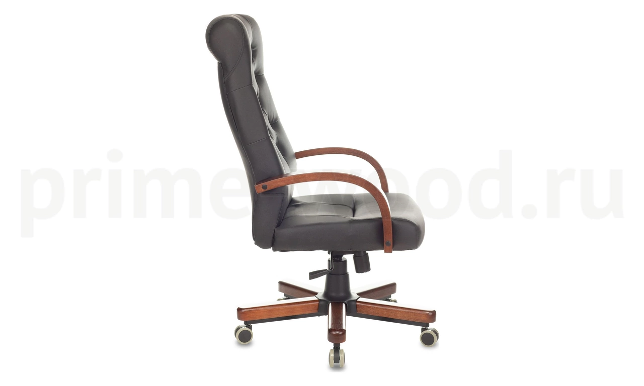 Кресло руководителя Бюрократ T-9928WALNUT/ECO-B - черный цвет, кожа, крестовина металл/дерево.