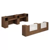 Мебель для приёмных Lounge - пример лаконичного минимализма. LED-подсветка стильных фартуков (устанавливается по желанию) подчёркивает графичную строгость линий. Конструктивные решения серии позволили полностью отказаться от промежуточных вертикальных опор, освободив пространство под столешницей, что обеспечивает комфортную и эффективную работу. Благодаря широкому выбору элементов Вы можете собрать композицию в соответствии с Вашими требованиями и при необходимости дополнить мебелью из коллекции Avance, выдержав приёмную зону, рабочие места персонала и системы хранения в едином стиле. На выбор доступно три классических тона натурального дерева (глубокий контрастный венге, классический или выбеленный дуб, а также актуальный белый). Фартуки выполняются в чёрном или белом цвете.