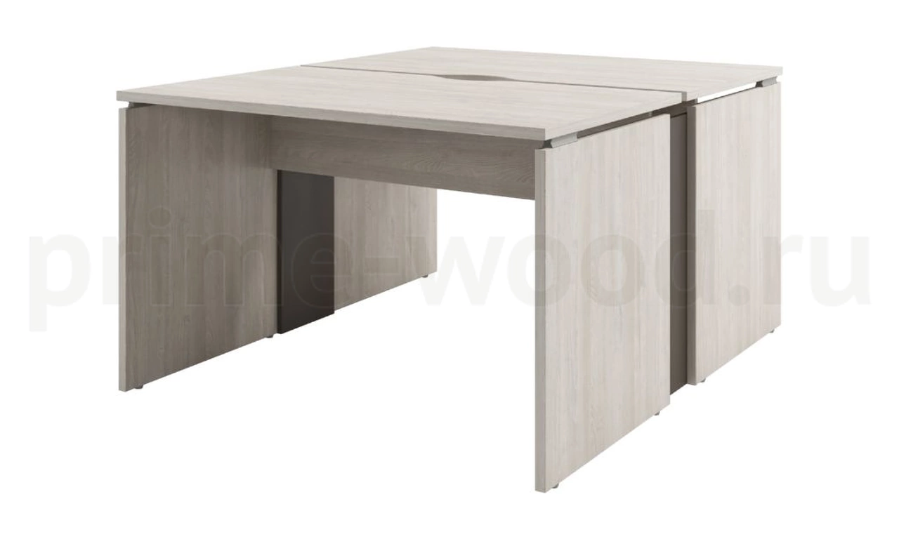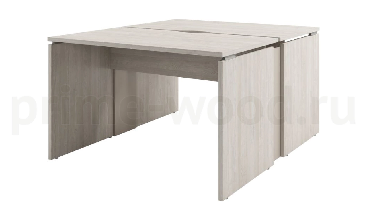 Стол-тандем на 2 рабочих места, опоры ЛДСП с проставкой. На длинной стороне столешниц сделаны вырезы для организации кабель-менеджмента.